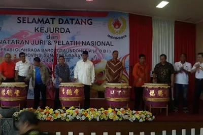 BENTENGSUMBAR.COM - Gubernur Provinsi Sumatera Barat Irwan Prayitno Datuk Rajo Bandaro Basa secara resmi membuka Kejurda Federasi Olahraga Barongsa Indonesia (FOBI) Sumbar di GOR HTT, Padang, Minggu (24/7). Dalam Kejurda yang dilaksanakan hanya sehari itu, tim Tjoa Kwa berhasil keluar sebagai juara barongsai tradisional.