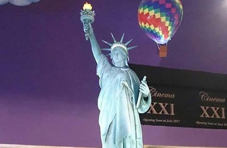 BENTENGSUMBAR.COM - Toko modern "Transmart Carrefour" milik pengusaha Chairul Tanjung berdiri di jalan Khatib Sulaiman, Padang. Di samping memiliki puluhan gerai, ternyata "Transmart Carrefour" memiliki arena hiburan keluarga, salah satunya adalah Patung Liberty.
