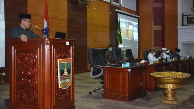 BENTENGSUMBAR.COM - Gubernur Sumatera Barat Irwan Prayitno menyampaikan ekspos dalam rapat Paripurna dengan agenda Evaluasi Pembatasan Sosial Berskala Besar (PSBB) dan persiapan perberlakukan "New Normal" tatanan normal baru dan perencanaan terhadap Recovery ekonomi masyarakat terdampak Covid-19, di Ruang Sidang Utama DPRD Sumbar, Kamis, 4 Juni 2020.
