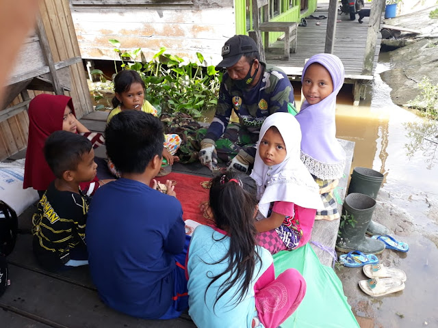 Kapuas,- Keberadaan anggota Satgas TMMD Reguler ke-110 Kodim 1011/KLK, di Desa Saka Lagun, Kecamatan Pulau Petak, Kebupaten Kapuas, begitu terasa hingga ke anak-anak. Satgas TMMD Serda Pahliansyah sering bercengkrama dan bermain bersama dengan anak-anak sekitar, Selasa (23/03/2021).