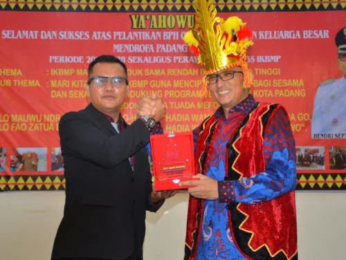 "Tahun ini banyak event yang akan digelar di Kota Padang, semoga marga Mendrofa khususnya yang tergabung di dalam IKBMP ikut mendukung kesuksesannya," pungkas Wali Kota Hendri Septa yang dipasangkan Mahkota Kerajaan Masyarakat Nias Selatan dan Rompi Adat Nias saat itu.