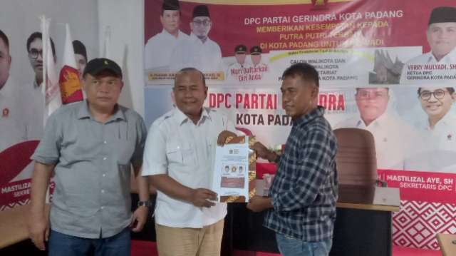 Kedatangan utusan Amril Amin itu disambut langsung oleh Wakil Ketua Bidang OKK DPC Partai Gerindra Kota Padang, Eko Muhardi didampingi jajaran pengurus lainnya.