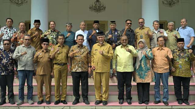 | Gubernur Sumbar, Mahyeldi Ansharullah menerima penyaluran bantuan penanganan bencana senilai Rp900 juta lebih dari Gubernur Kepri Ansar Ahmad. |